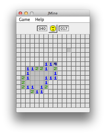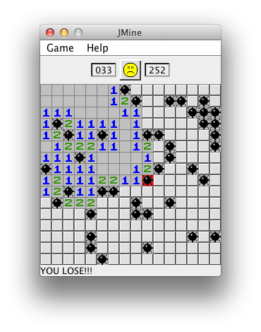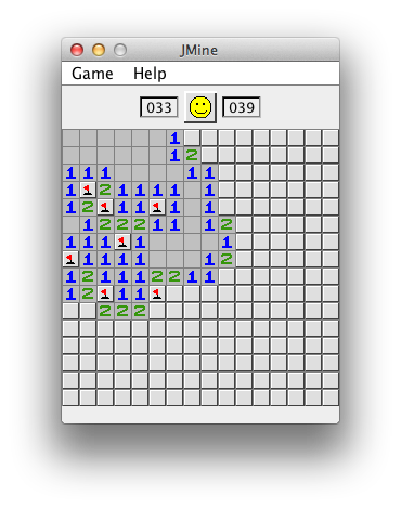 Freshmen year in college (2005, for those keeping track), I had a school project that was to build John Conway's Game Of Life in Java. The whole time I spent working on it, I couldn't stop thinking that this seemed a LOT like MineSweeper. So then, one day, I was bored and got a burst of inspiration to turn it into MineSweeper. But, alas, I couldn't find my original source codeā¦So I wrote it from scratch.